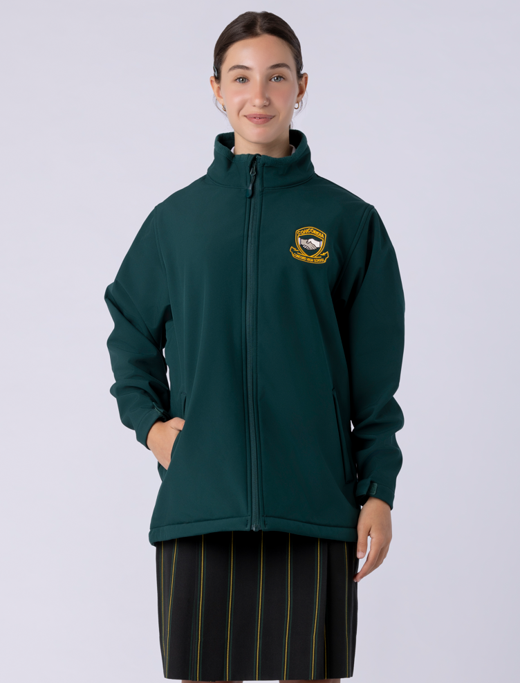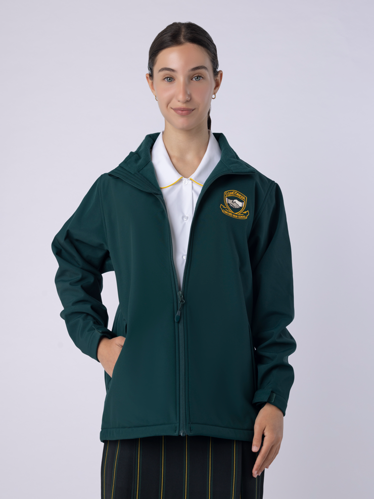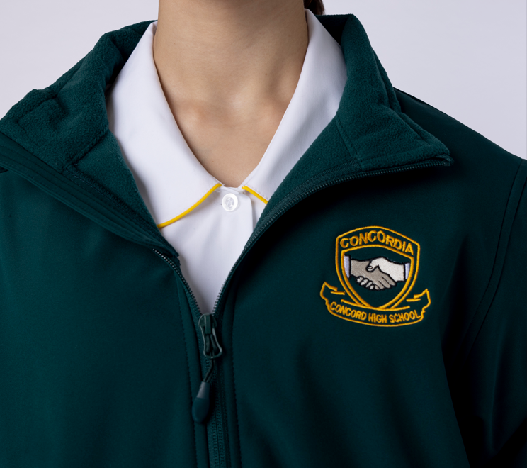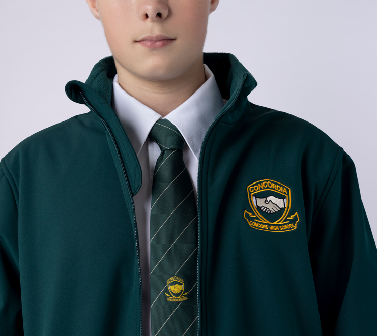 The Softshell Jackets are made from Concord High School dark green, polyester and cotton 3-layer bonded fabric, with a logo on the left chest. Warm fleecy lining is protected by a wet-suit like material on the outer layer. They are separated by a showerproof membrane that keeps the wearer nice and dry. They are a relaxed fit designed to fit both male and female growing bodies. As well as being made with industry leading YKK zippers. They are to be worn with the Short/ Long Sleeve Shirt, and Junior/ Senior Tie.